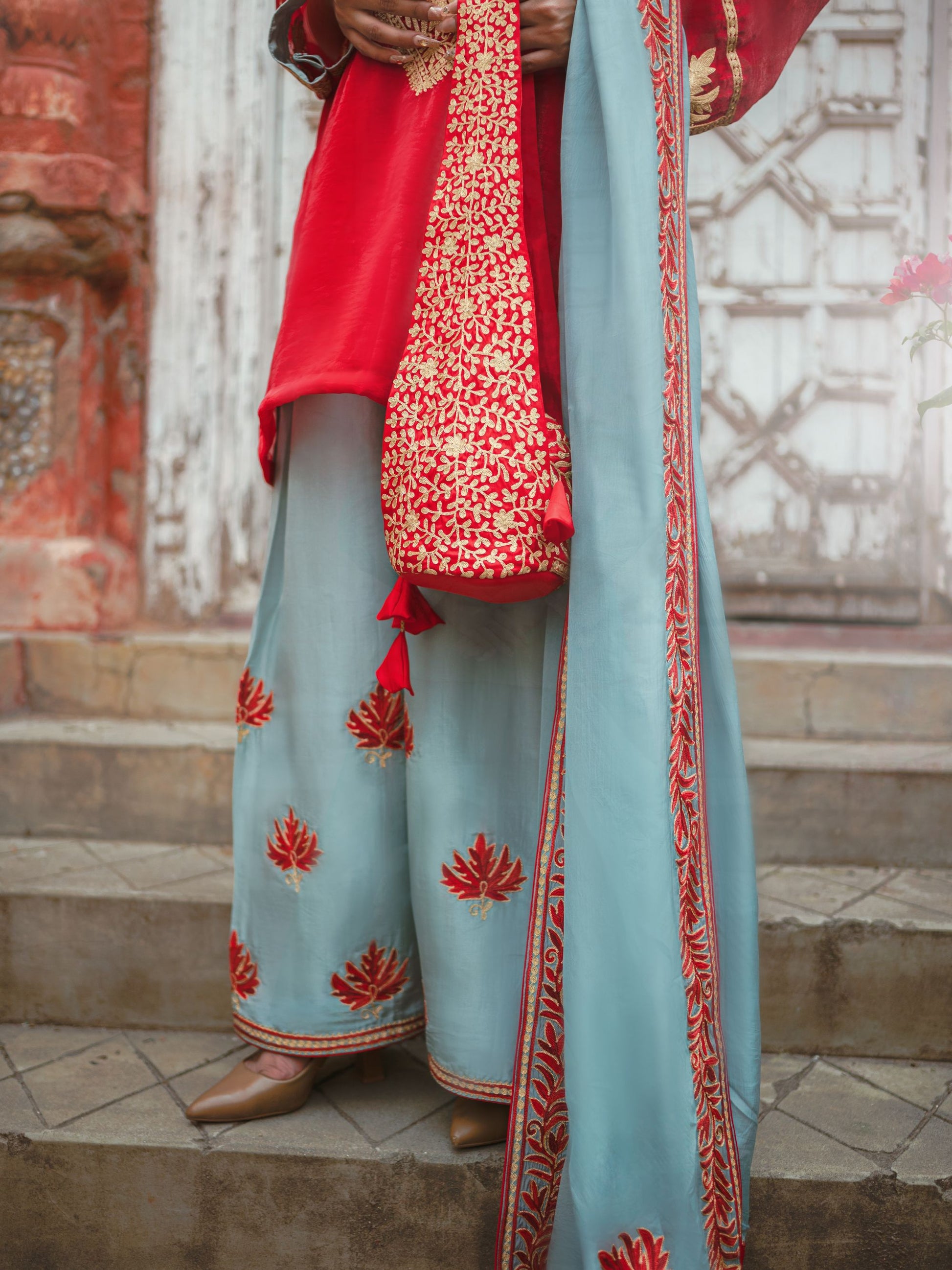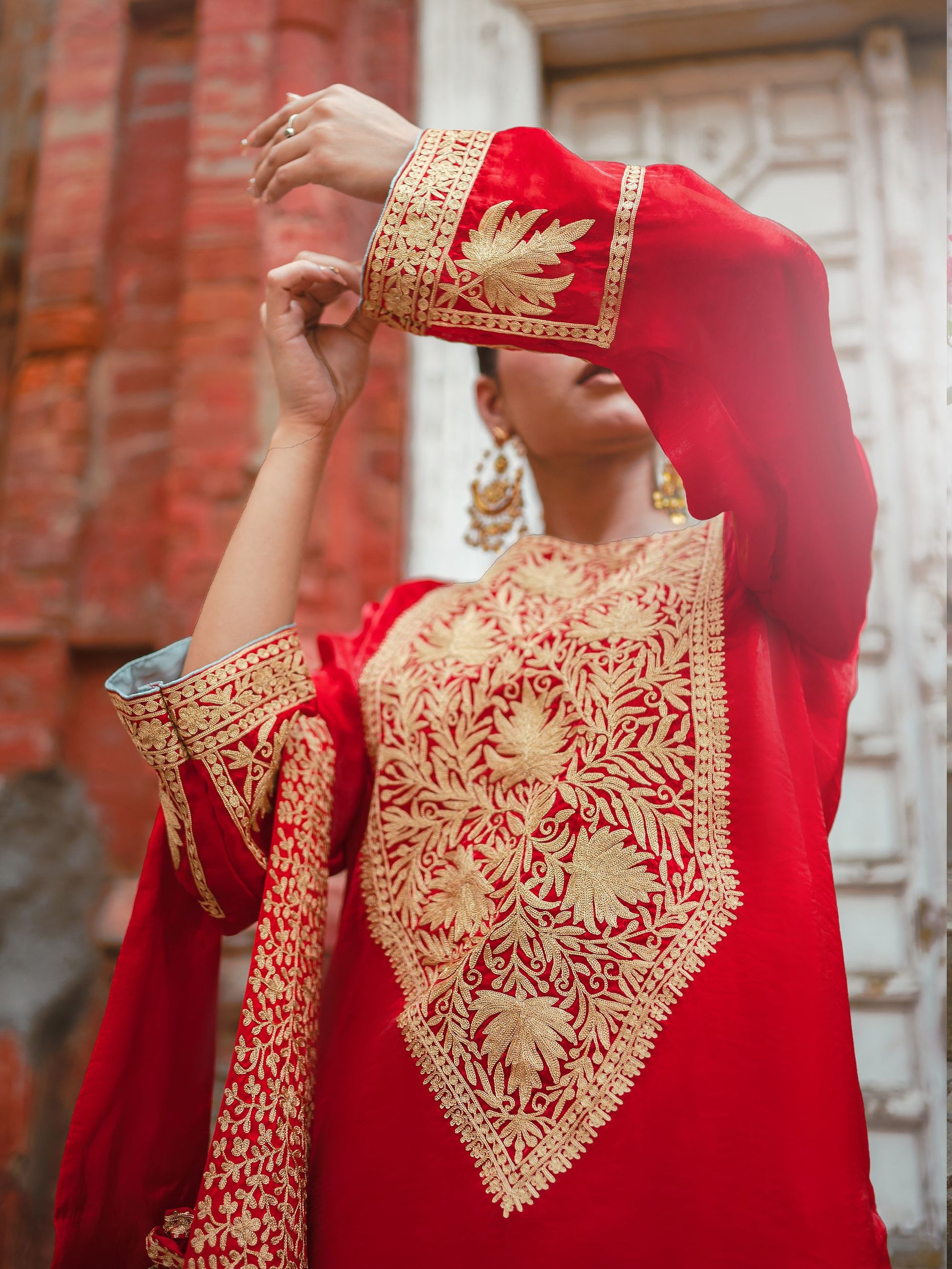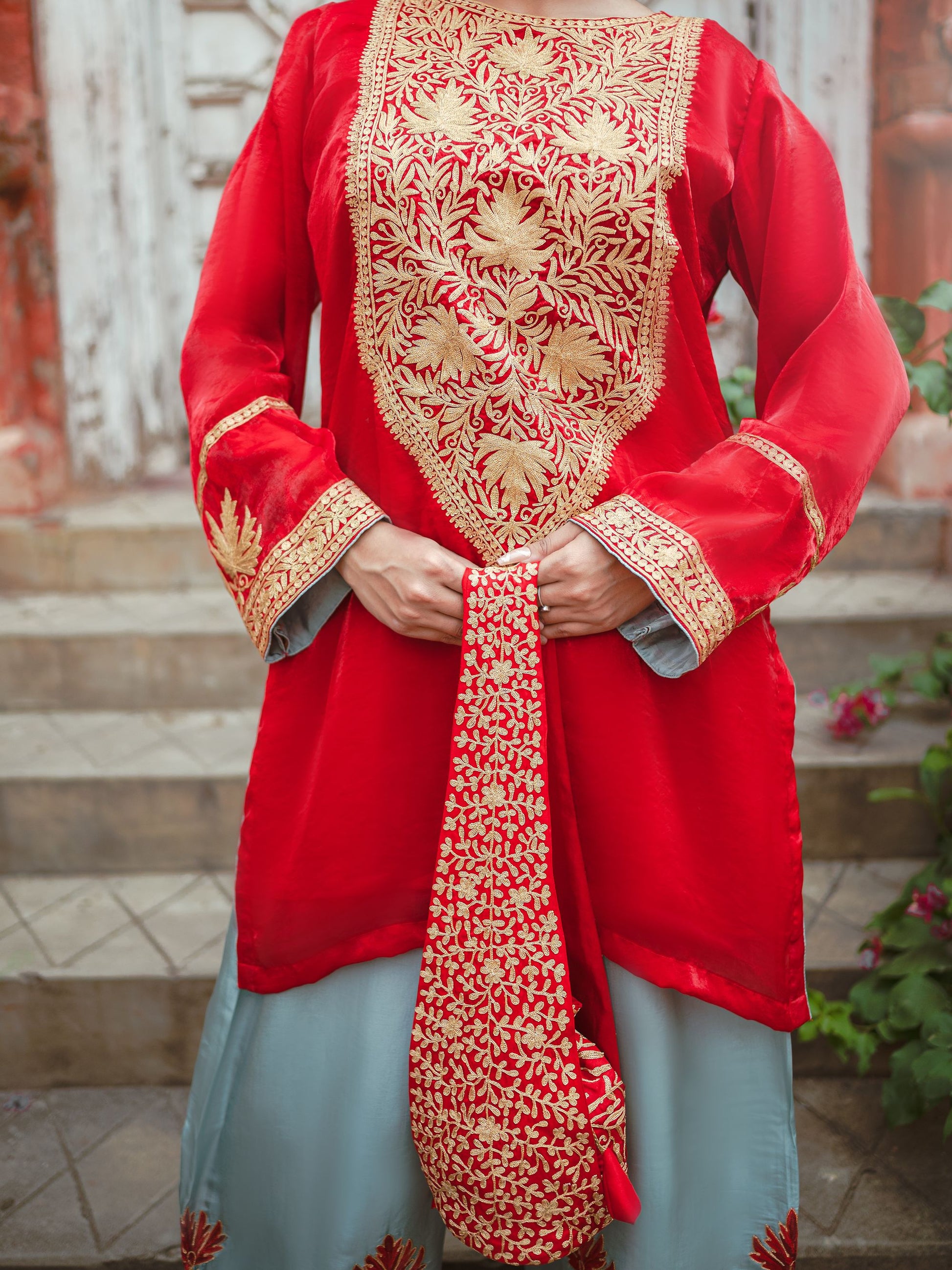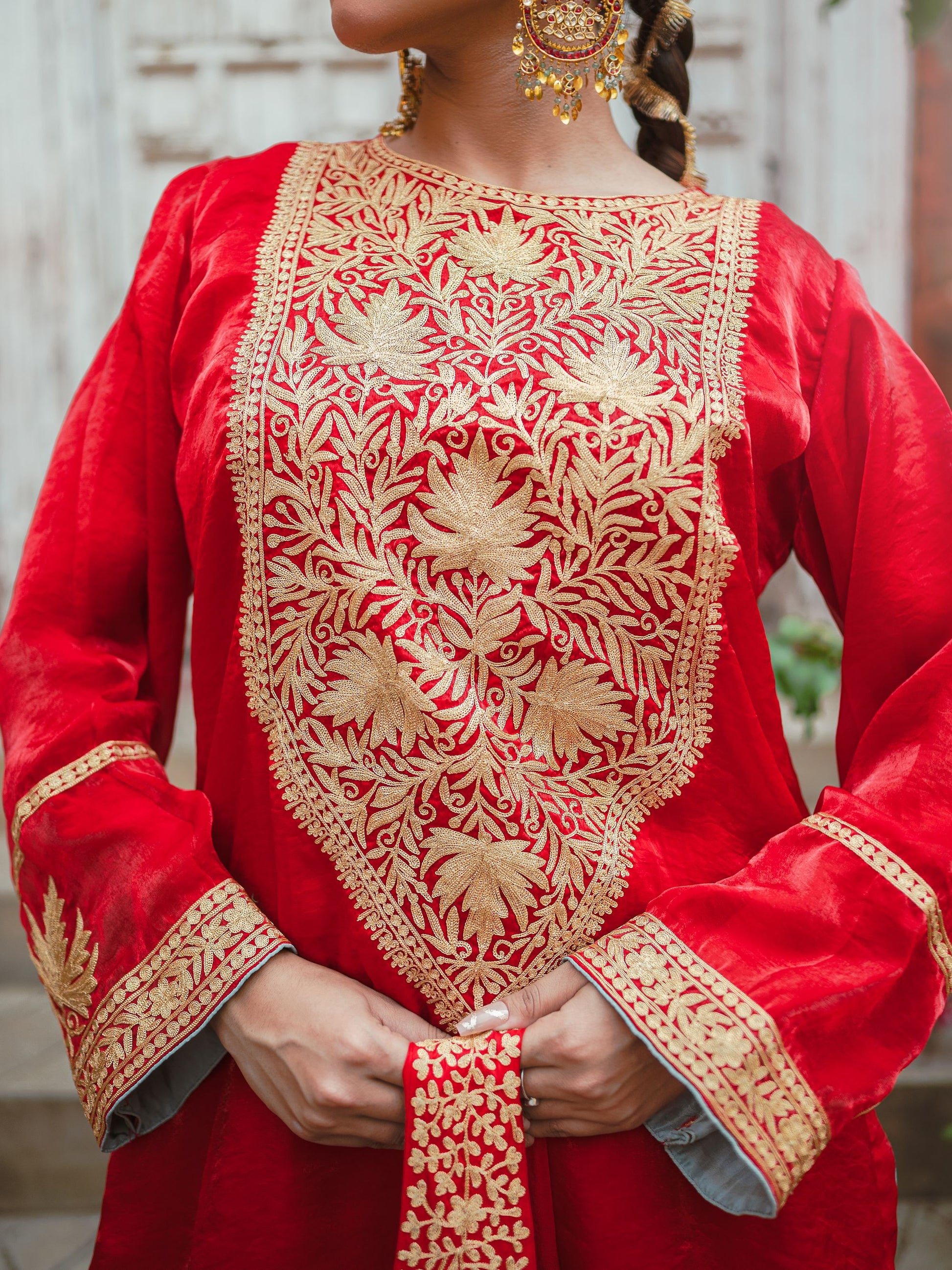 Embroidery: Kashmiri Golden Tilla & Red Aari Embroidery