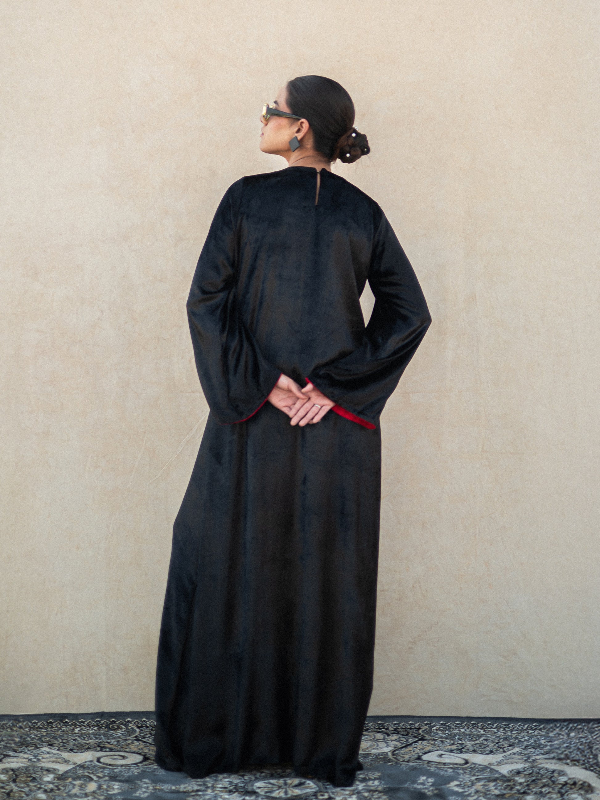 Upper: Black Makhmal Dress